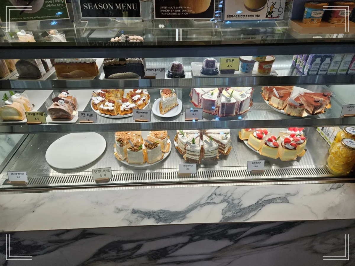 베이커리 메뉴는 타 베이커리 카페에 비해 가격대가 괜찮았어요. 베이커리 메뉴도 다양하게 있었고, 이 카페만의 특색있는 메뉴들도 함께 구성되어 있어 재미를 더해주었어요.
