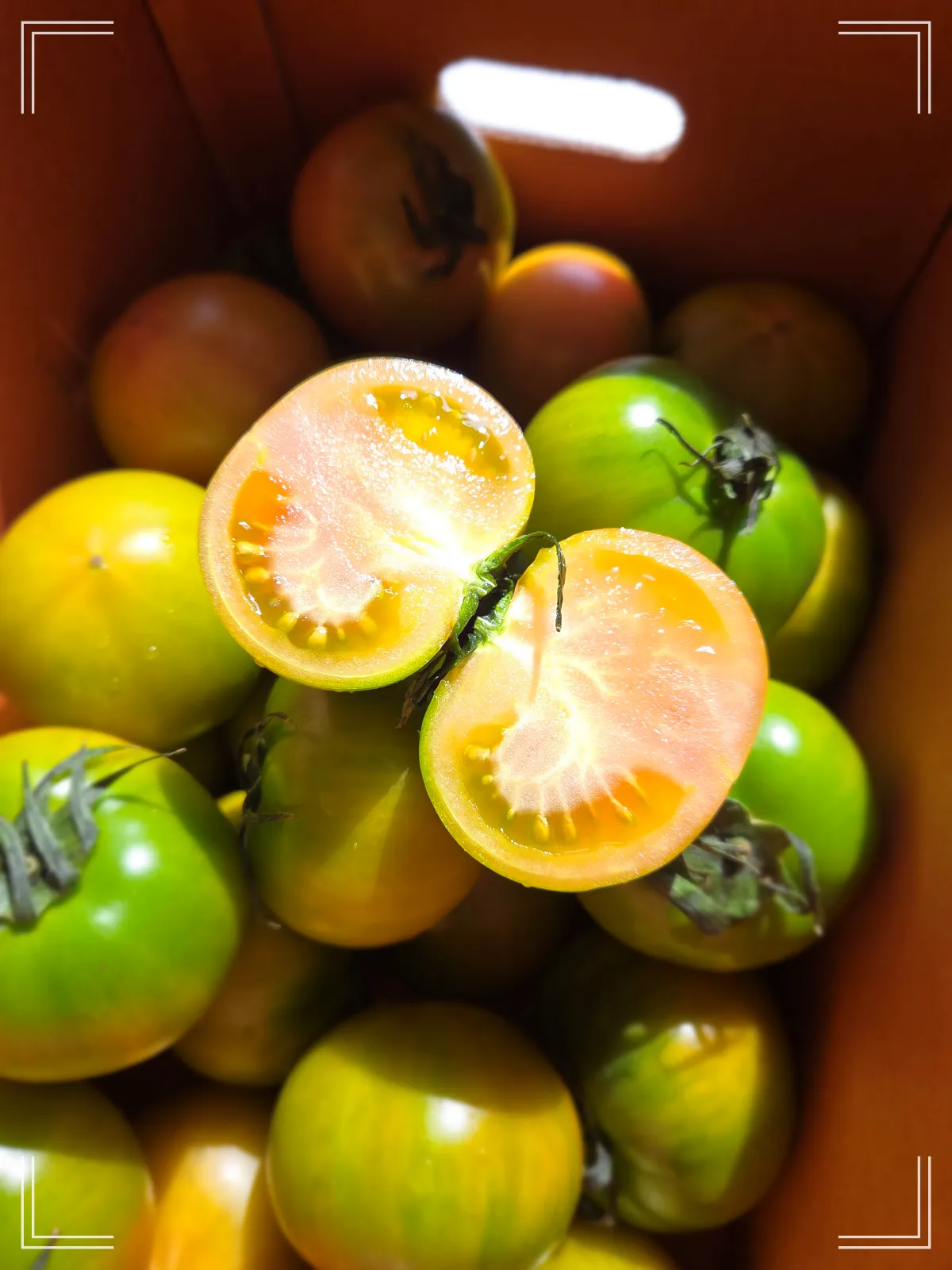 초록토마토는 느낌상 덜 익은 것 같은 느낌을 주죠. 그래서 많은 손님들이 이 토마토 안 익은 거 아니냐며 물어보곤 하시는데요. 대저 토마토는 먹기 딱 좋을 때가 바로 이렇게 푸르 푸릇할 때랍니다. 후숙이 되어서 붉은색을 띠게 되면 짠맛과 산미를 잃고 단맛이 올라오기 때문인데요. 즉, 대저토마토만의 매력을 잃는 것이죠. 대저 토마토도 마찬가지로 계속 후숙이 진행되면 일반 찰 토마토처럼 붉은 기가 올라와요. 그래서 그전에 먹어야 해요. 그래야 진정한 대저 토마토의 맛을 충분히 느낄 수 있거든요. 이 단짠의 맛이 묘한 중독성을 불러일으켜요. 산미와 짭짤함이 있기 떄문에 요리 재료로도 많이 사랑받는데요. 저도 현업에 있을 때 대저토마토로 샐러드 메뉴를 많이 구성하곤 했어요. 푸름의 색과 단짠의 맛이 식욕을 돋우거든요.