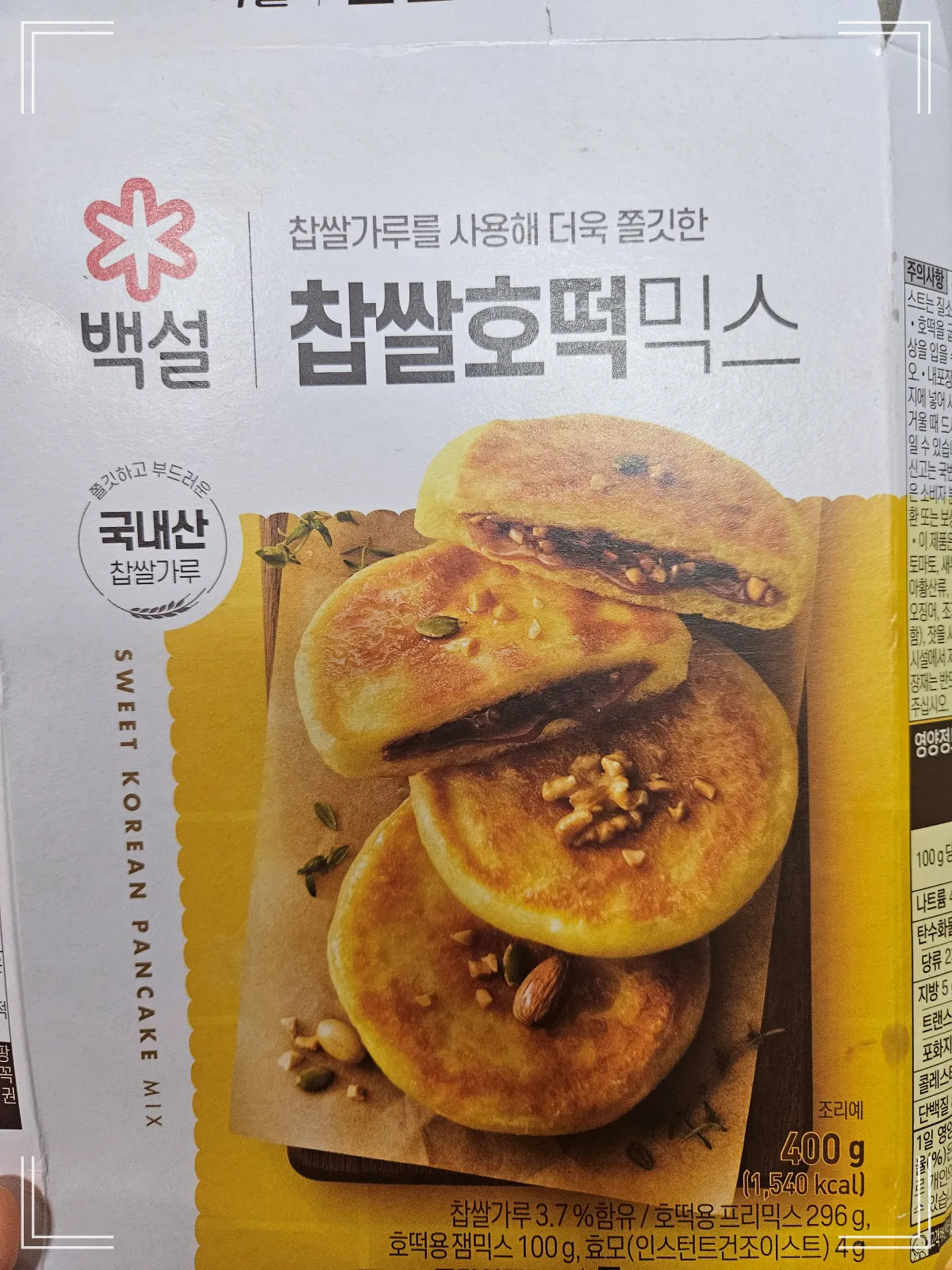 겨울철 반가운 간식인데 요즘은 파는 곳을 쉽게 찾아볼 수 없는 호떡. 재래시장 거리에 가야 간신히 볼 수 있는 것 같아요. 붕어빵, 잉어빵, 호두과자 파시는 분들은 간혹 만날 수 있지만 호떡파시는 분은 좀처럼 만나기 어렵더라고요. 그래도 이렇게 마트에서 간단히 사서 집에서 만들어먹을 수 있어서 너무 좋은 것 같아요. 그리고 만드는 과정이 크게 어렵지 않아 가정에서 방학 때 아이들과 함께 만들어보시는 것도 좋은 추억을 하나 쌓을 수 있는 방법이에요. 그리고 박스 뒷면을 보니 요즘은 이 호떡 믹스로 다양한 간식거리를 만들어 볼 수 있더라고요. 찹쌀 호떡볼이라던지 시나몬롤도 만들 수 있다고 나와있었어요. 다양하게 활용이 가능한 것 같아요. 호떡을 기름에 굽고 튀기고 하는 과정이 번거롭게 느껴지시는 분들은 간단하게 에어프라이어를 이용해서 맛있는 겨울 간식을 만들 수 있으니 활용도가 더 높아진 것 같아요. 저도 다음번엔 제 최애 빵인 시나몬롤을 도전해보려고요.